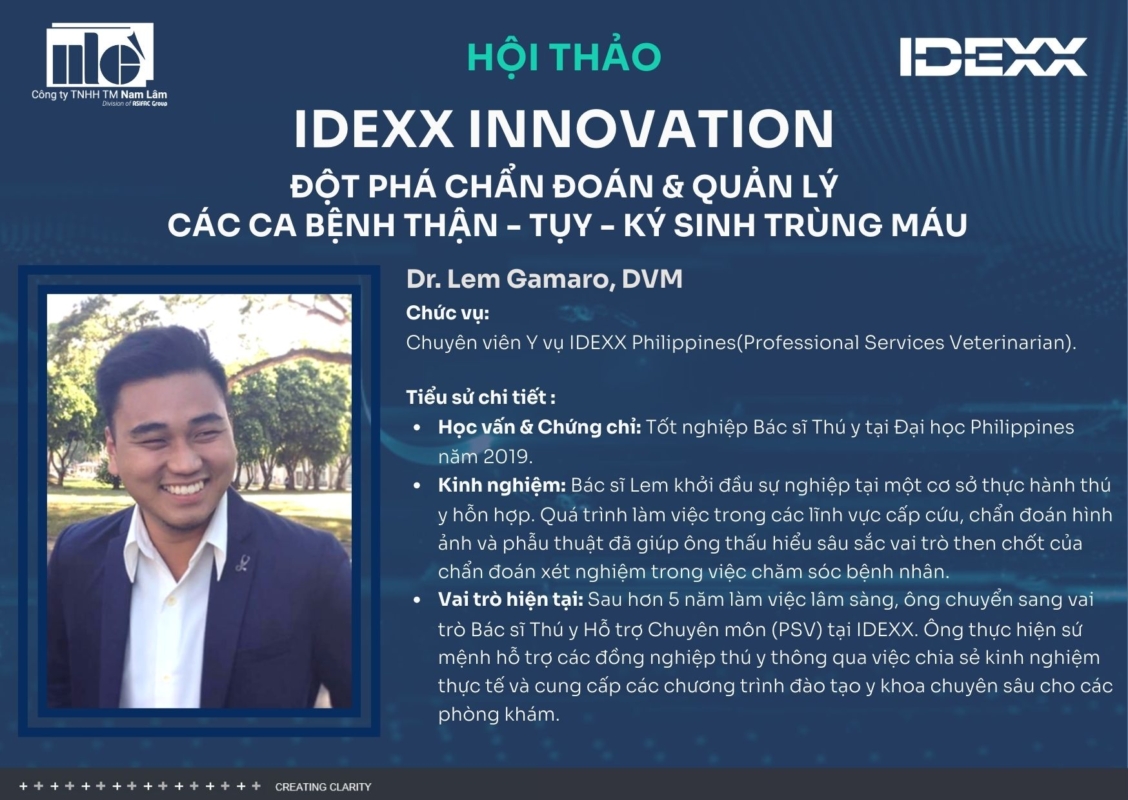 - Dr. Lem Gamaro: Chuyên viên y vụ IDEXX – Philippines.